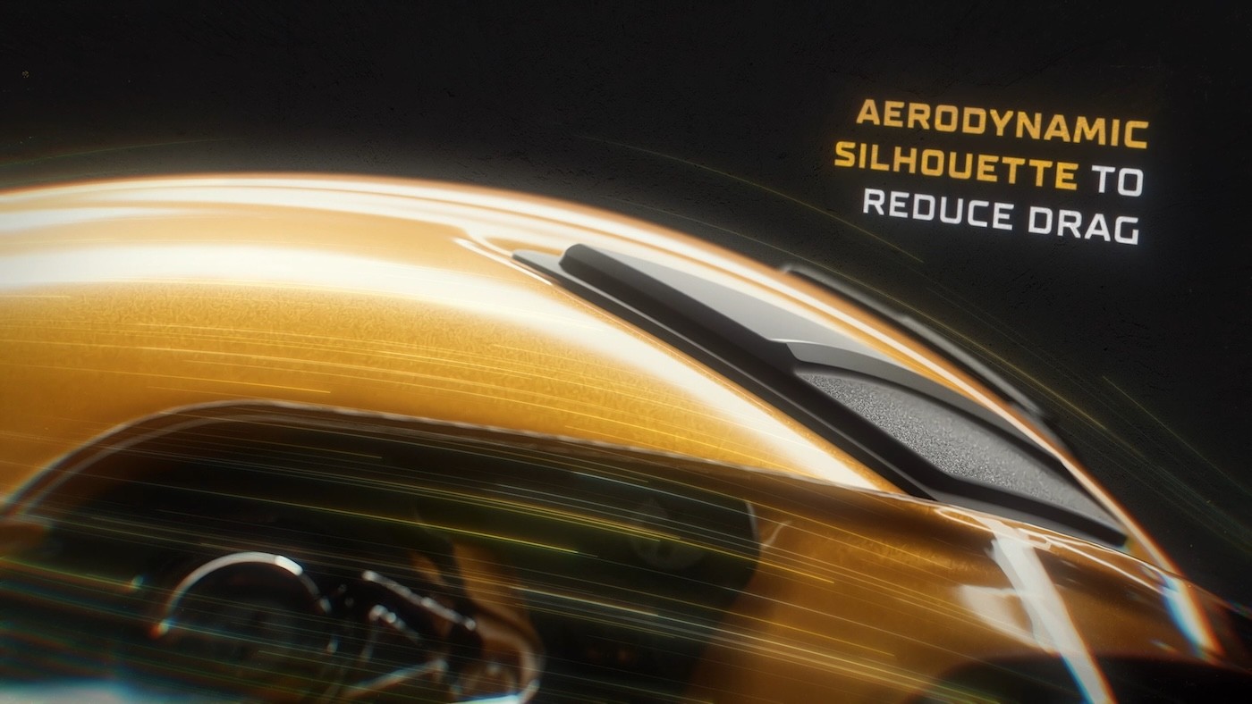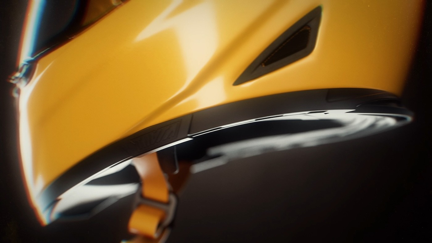 The film blends sleek CG with kinetic typography and live-action moments, echoing the duality the helmet stands for — control and speed, aggression and precision.